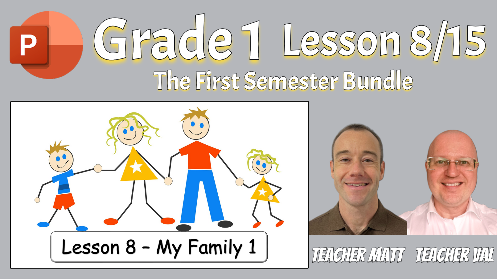 This product is the Grade 1 - Semester 1 PowerPoint Bundle Deal! There are a total of 15 PowerPoints included in this deal and it will make your start as a grade 1 teacher a lot smoother and easier. Also, these lessons are designed to guide your young learners through the basics of English little by little, so they can really learn and remember. Each lesson has new words, sentences, questions, dialogues and of course fun games to keep them engaged and interested in your class.