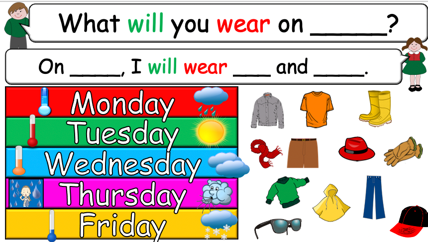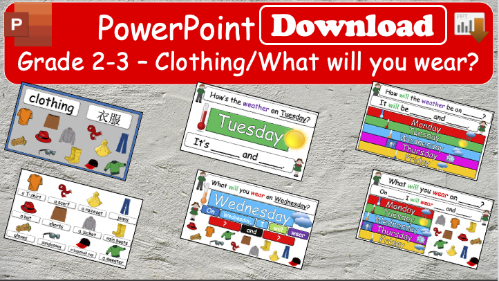 Grade 2-3 - ESL Lesson - Clothing/What will you wear? - PowerPoint Lessomn