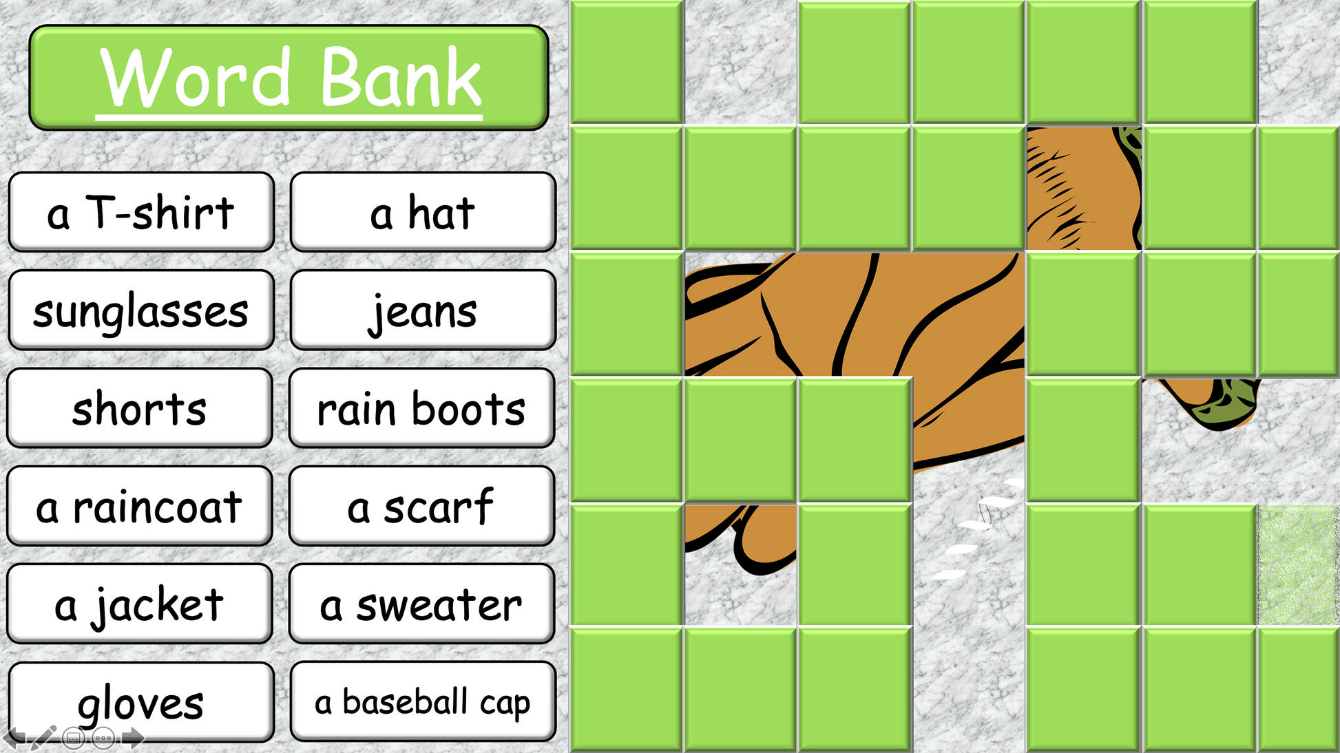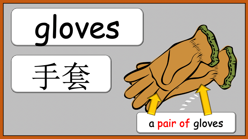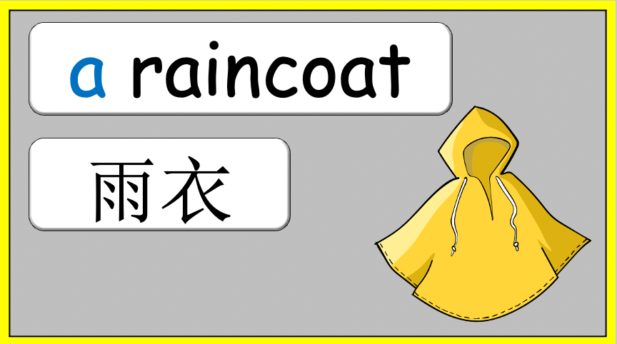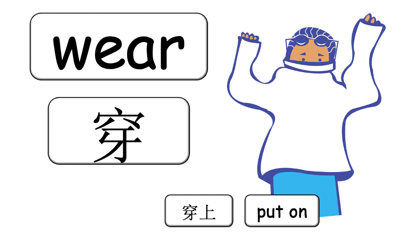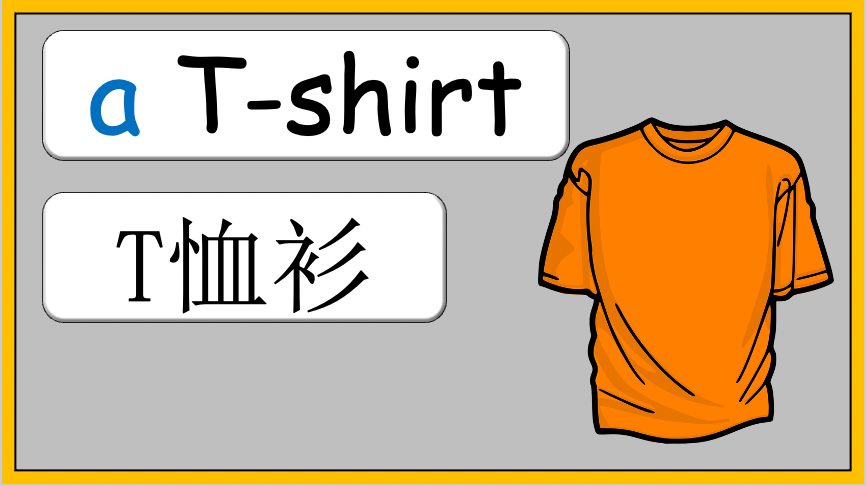 ✅ Clothing vocabulary practice with clear visuals and Chinese translations.