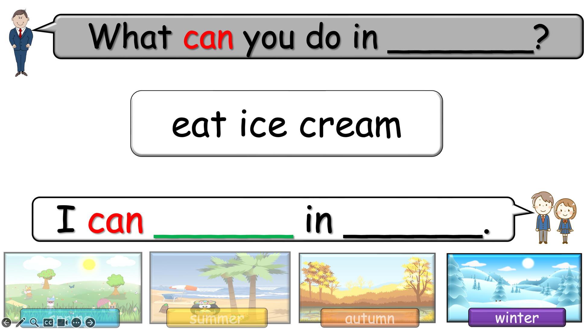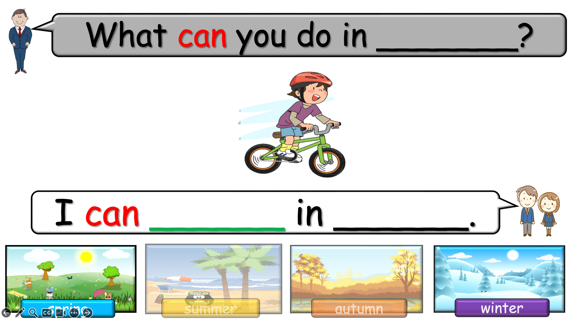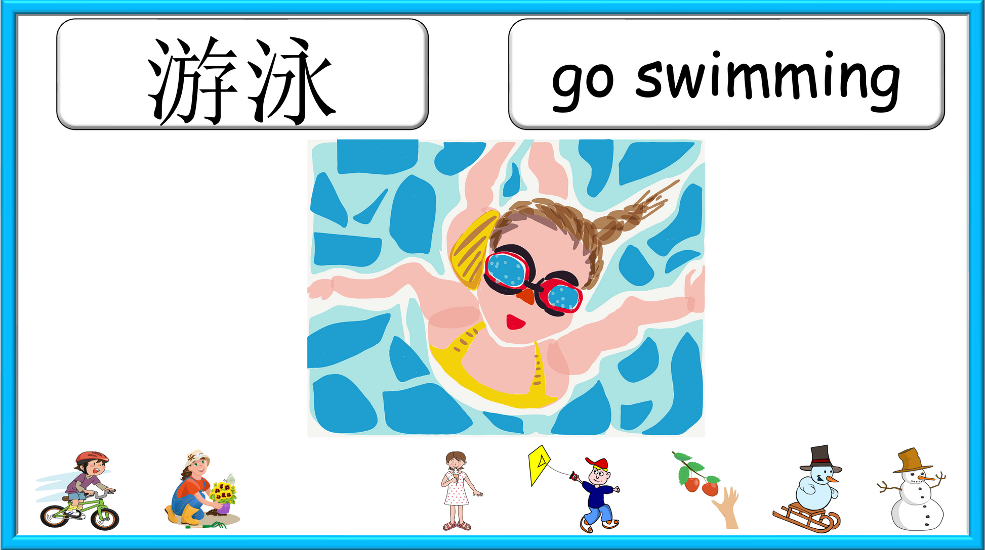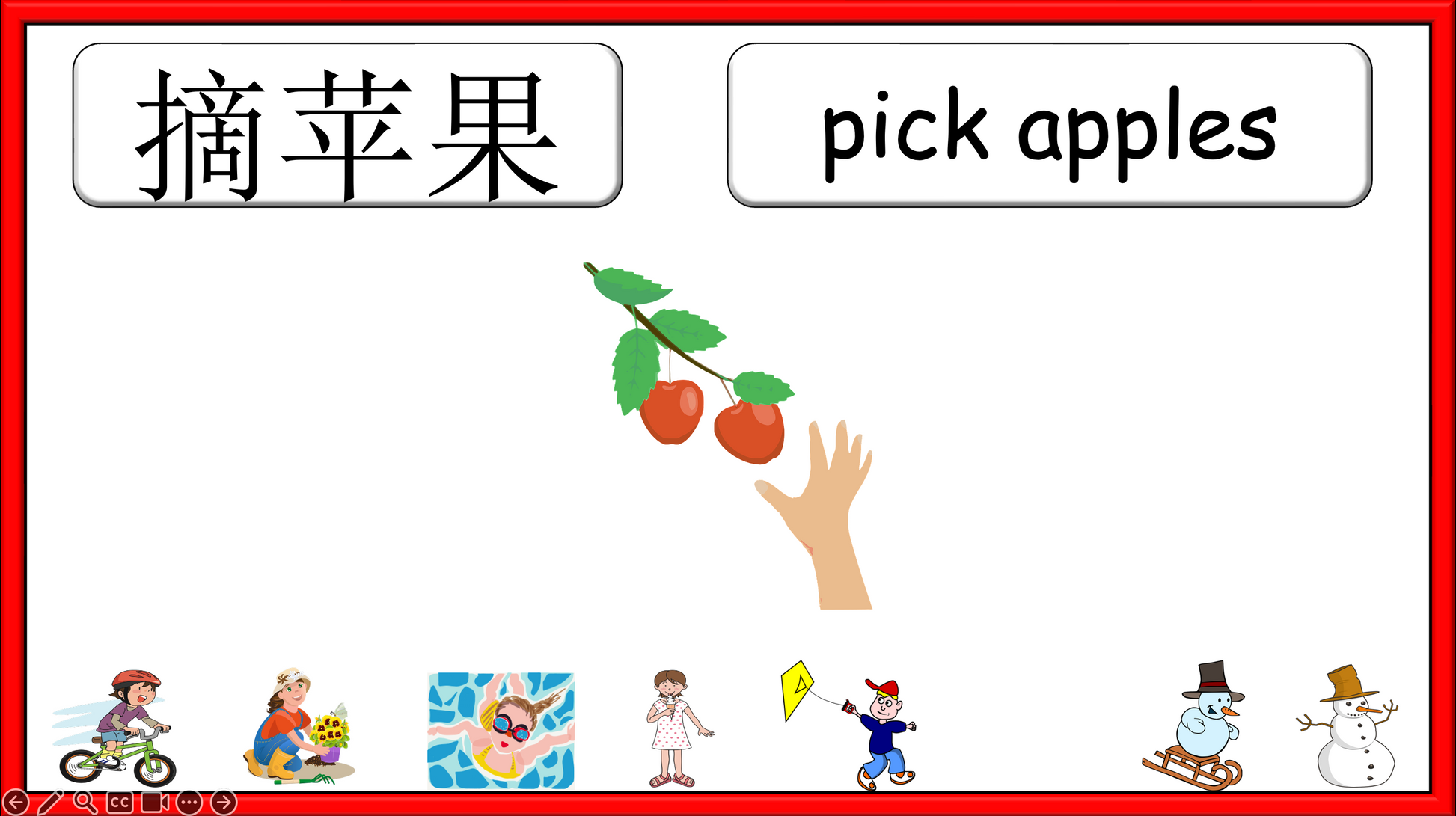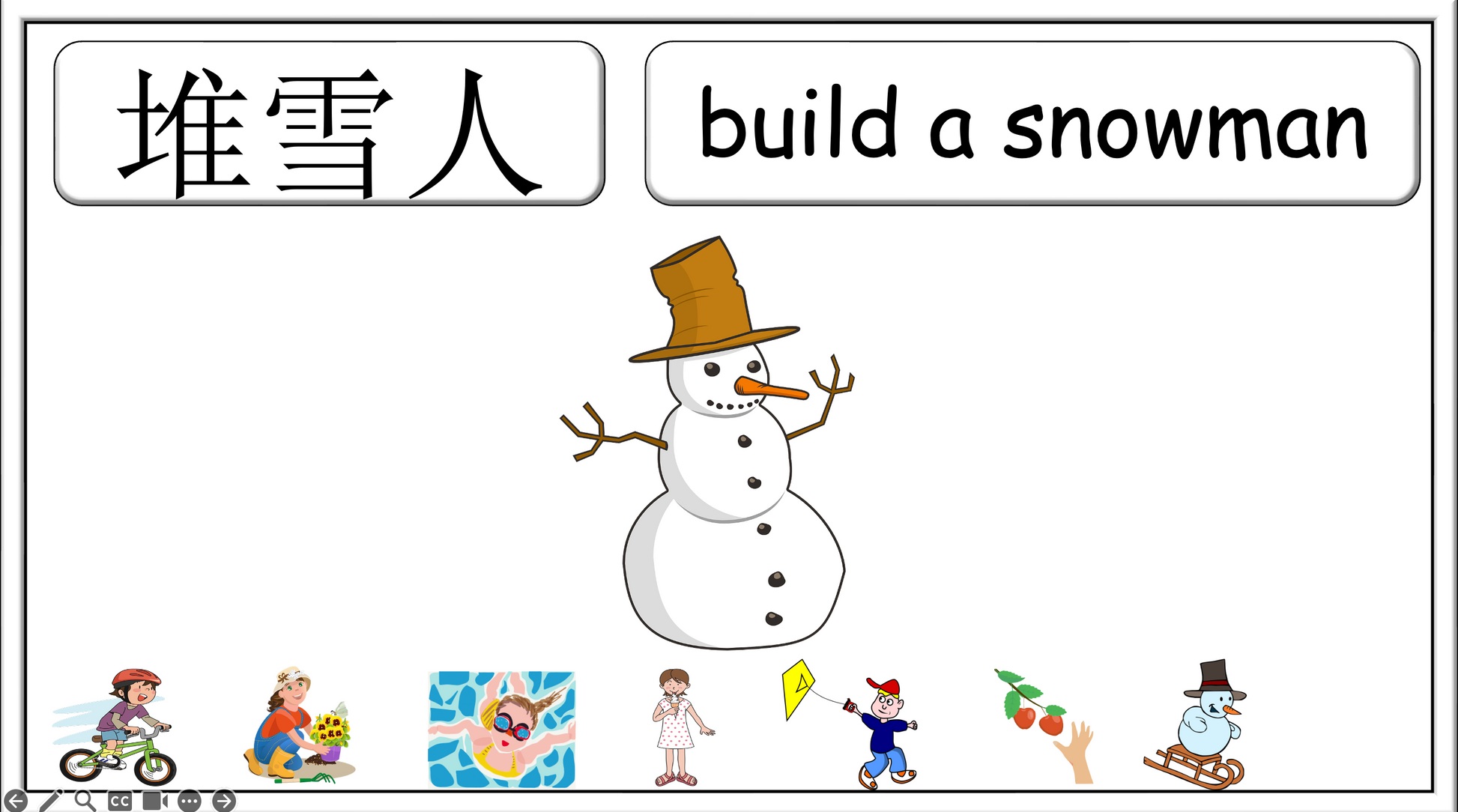 ride a bike, go swimming, fly a kite, build a snowman, plant flowers, eat ice cream, pick apples, go sledding