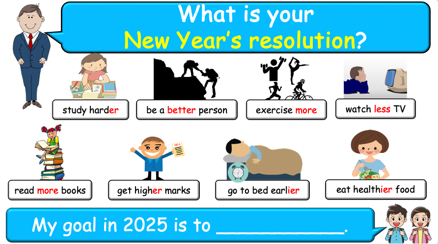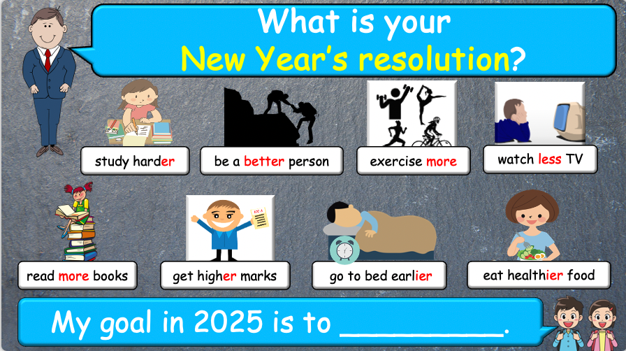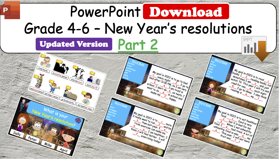 Grade 4-6 - ESL Lesson - New Year's resolutions - Part 2 - PowerPoint Lesson