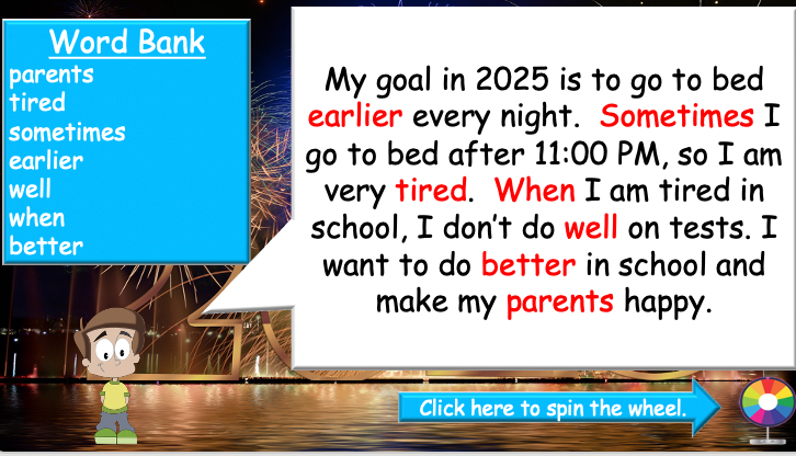 ✅ Writing & Homework Assignment – Students create their own resolutions and bring them next week.