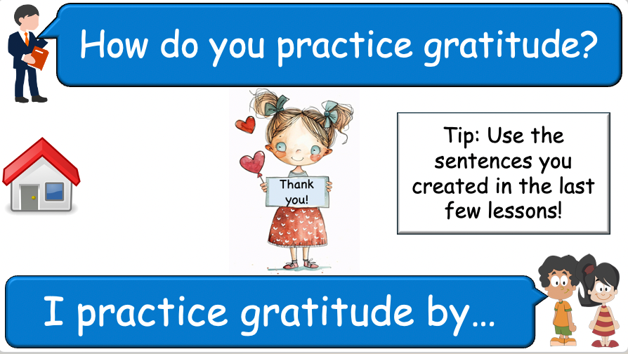 ✅ Focused Review: Students discuss essential questions about gratitude, hydration, sleep, and screen time.